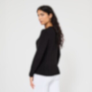 Klassisk kabelstriktrøje med rund hals i blød og behagelig kvalitet. Ribkant forneden og manchetter. Større ærmekanter med dekorative knapper.