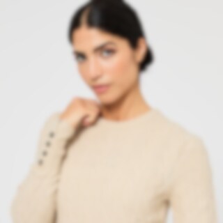 Klassisk kabelstriktrøje med rund hals i blød og behagelig kvalitet. Ribkant forneden og manchetter. Større ærmekanter med dekorative knapper.