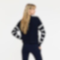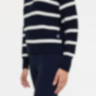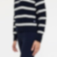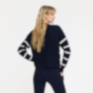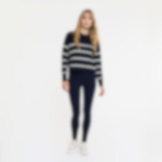 Stribet striksweater i oversize-facon. Er velegnet både i stalden og til hverdag. Rund hals og ribstrikkede ærmekanter og underkant.