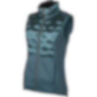 Figursyet dynevest med skinnende effekt i stoffet. Polstret med polyestervat med en dunlignende følelse. To lynlåslommer. Sidepaneler i strækbar powerfleece med børstet inderside sikrer optimal komfort og pasform. Krave med fleece på indersiden. Metallynl