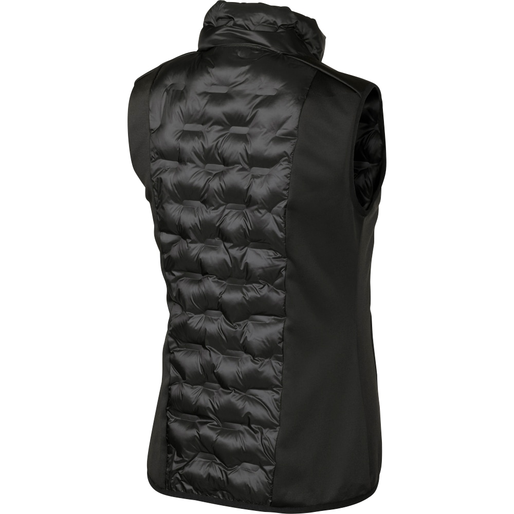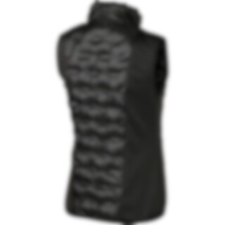 Figursyet dynevest med skinnende effekt i stoffet. Polstret med polyestervat med en dunlignende følelse. To lynlåslommer. Sidepaneler i strækbar powerfleece med børstet inderside sikrer optimal komfort og pasform. Krave med fleece på indersiden. Metallynl