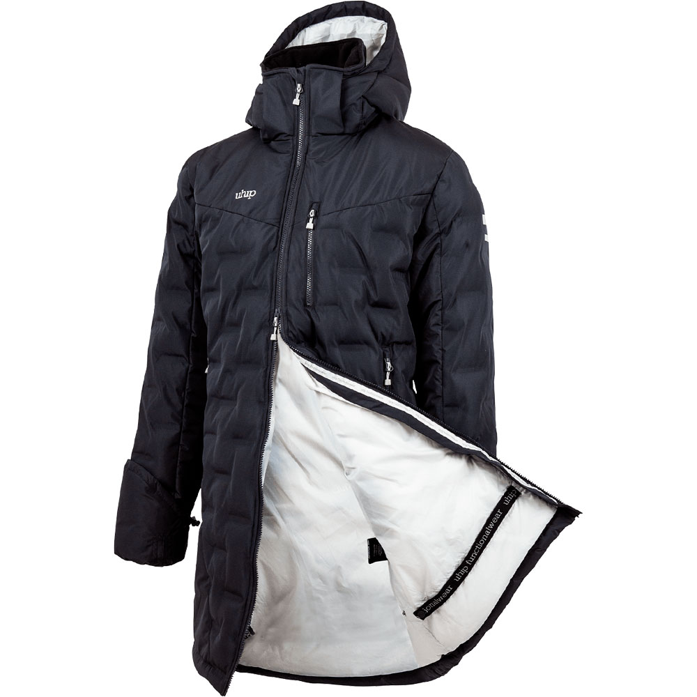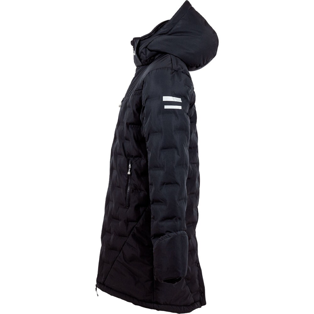 Parka med ærmekanter, der kan trækkes ned, som beskytter hånden ved regn og blæst. Vatteret med DUPONT™ Sorona® fibre. Tre forlommer med lynlås. Jakken er imprægneret med Rudolf Bionic Finish Eco. Rudolf Bionic Finish Eco er en vand-og smudsafvisende behandling, som er mere miljøvenlig og uden tilsatte flourcaboner (PFC). Dette gør, at du kan have brug for at gentage imprægneringen, hvis vandet på ydersiden holder op med at lægge sig som perler. Det gør du ved at tilsætte varme ved lave temperaturer fx ved strygning eller tørretumling. Ved behov kan du også få brug for imprægneringsmiddel. Der kræves ingen specielle vaskemidler, men undgå blødgørende skyllemidler, der nedsætter behandlingens funktion.