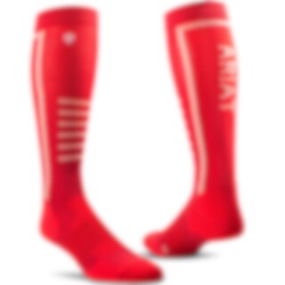 Faconstrikkede strømper fra Ariat med fod i frotté og tyndere skaft.