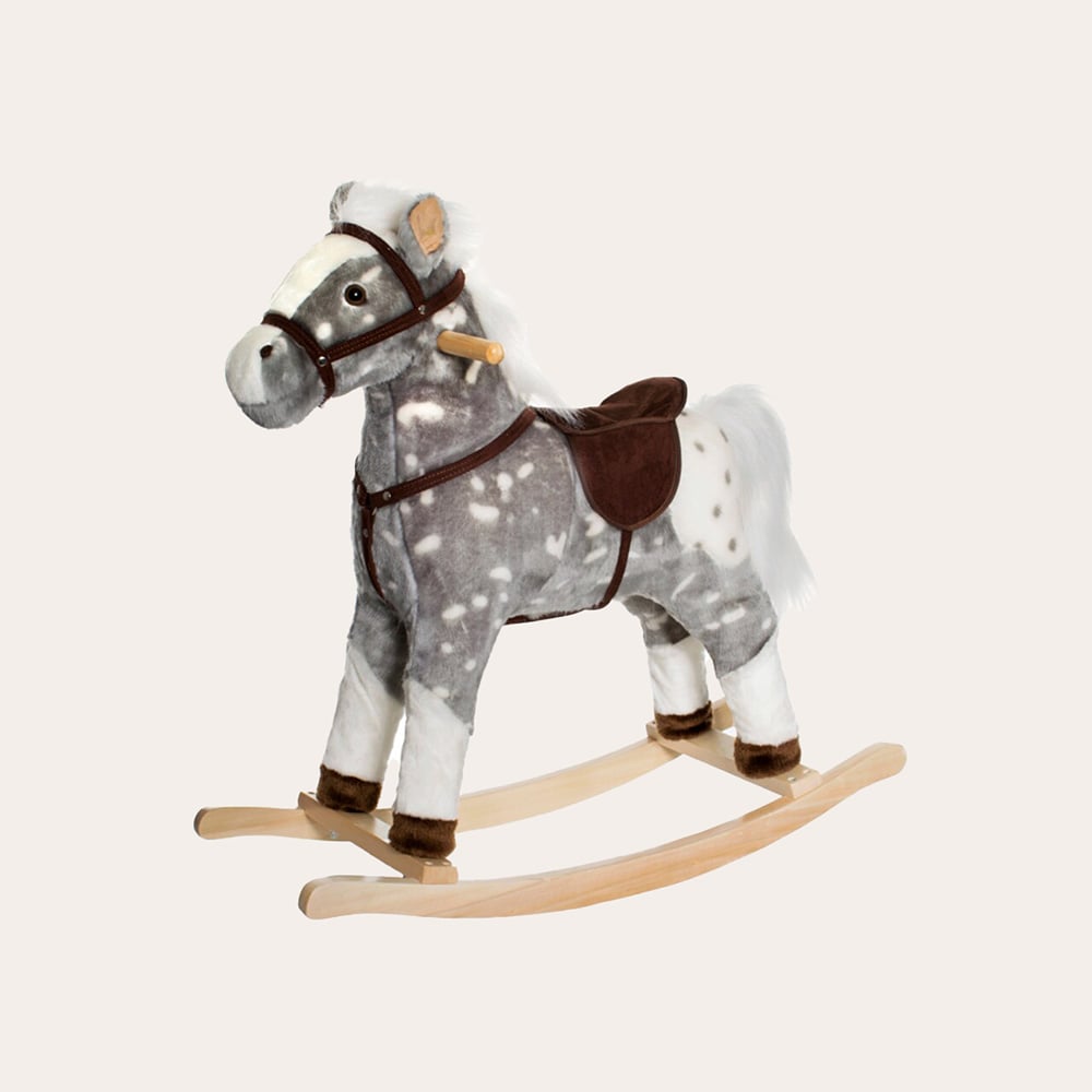 Gyngehesten Pricken er en gyngehest af blød kvalitet, som man kan galoppere afsted på eventyr med. Hesten vrinsker og laver galoperende lyde, når du trykker på højre og venstre øre. Smarte håndtag, der er fastgjort til hver side af hovedet, gør det nemt for børn at holde fast. Gyngehesten er også udstyret med væltesikre meder. Maksimal vægt: 55 kg. Kræver 2 x AA-batterier (medfølger ikke). Fra 3 år, godkendt i henhold til CE & EN71. Fjern alle etiketter, plastikdele og snore, før du giver legetøjet til et barn.