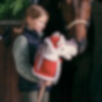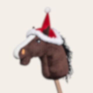 Nissehue til kæphest i fleece med kant i teddy. Hul til ører.