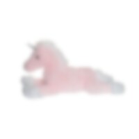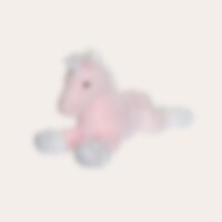 Liggende enhjørning i lyserød og hvid med en praktisk størrelse. Klovene og hornet funkler i en glitrende, fortryllende hvid tone. Størrelse: 60 cm lang. EN71 og CE-mærket. Fjern alle etiketter, plastikdele og snore, før du giver legetøjet til et barn.