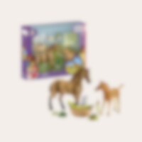 En Quarter Horse har fået et føl, som Sarah giver mad med flaske! Hoppen lader Sarah komme tæt på og endda børste føllet. Sarah glemmer både tid og sted. Hun skynder sig hen til hvalpen, som kun er få dage gammel. Den har puttet sig i tæppet i sin lille k
