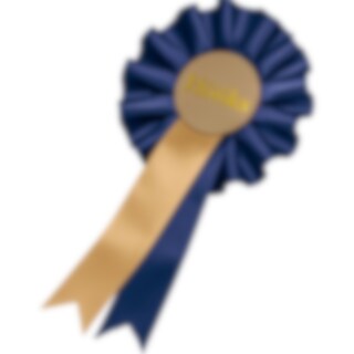 Præmieroset med krog på bagsiden. Total længde: 20 cm, bredde: 10 cm.