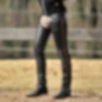 Fullchaps i slank model i blødt nappa. Elastik langs med lynlåsen. Justerbart bælte foran og bagpå.