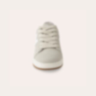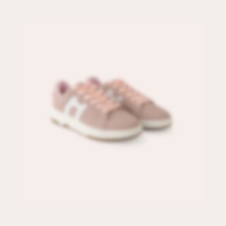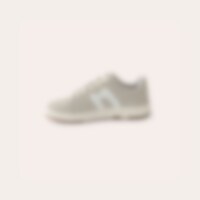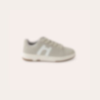 Sneakers i syntetisk ruskind med tofarvet ydersål. Dekoration på siden i kontrastfarve. Brede snørebånd. Lidt store i størrelsen.