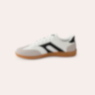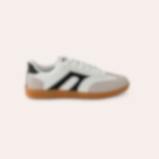 Sneakers i syntetisk materiale med naturfarvet ydersål. Dekoration på siden i kontrastfarve.
