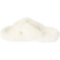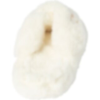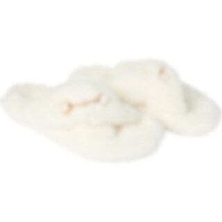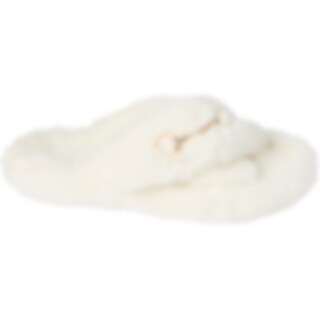 Hjemmesko med gummisål og overdel i tyk syntetisk pels. Dekoreret med guldfarvet bid.
