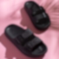 Komfortabel og trendy hjemmesko i EVA-materiale med tyk sål og justerbare stropper. Letvægtsmodel.