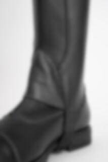 Leggings i blødt skind med elastik langs med lynlåsen.