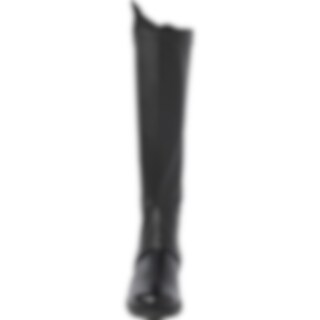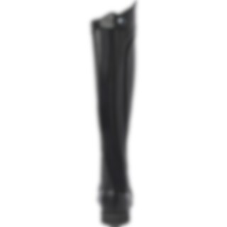 Leggings i blødt skind. Elastik langs med den drejede lynlås. Dekoreret med små sorte sten på ydersiden.