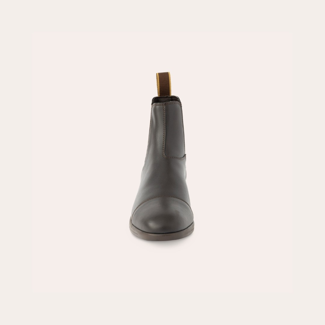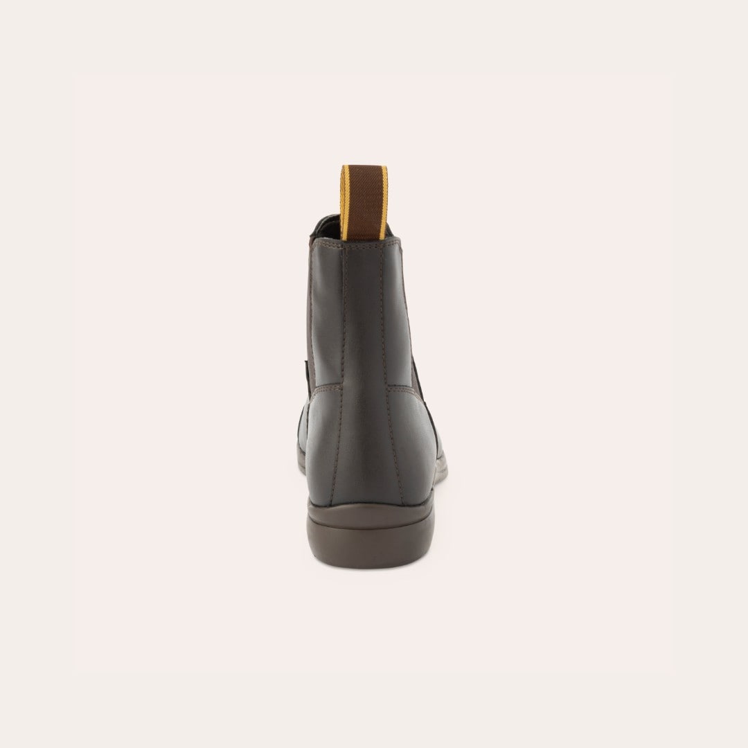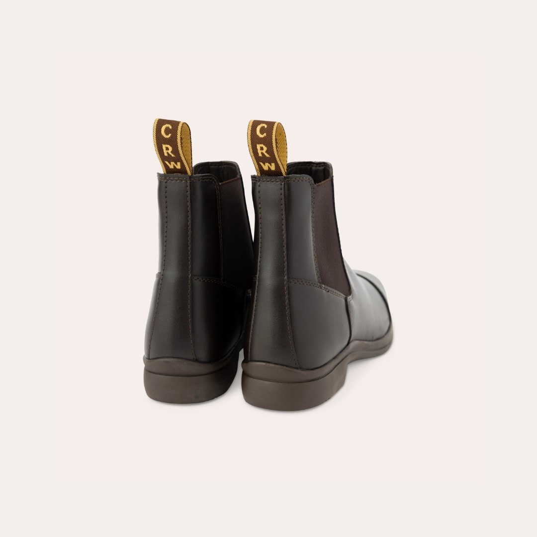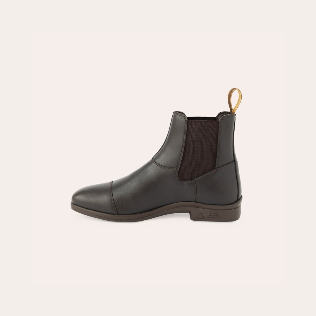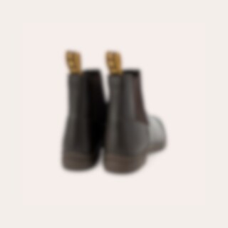 Jodhpur i blødt, vandafvisende syntetmateriale, som er let at tørre af, med elastik i siden. Gummisål.