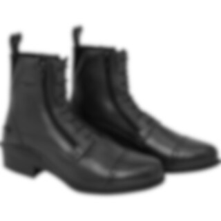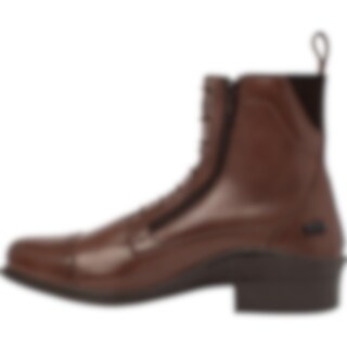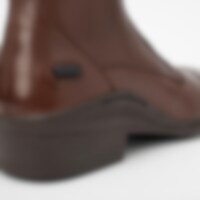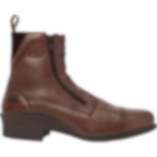 Jodhpurs i sydamerikansk skind med elastiksnører og dobbelt lynlås foran. Elastik i siderne. Gummisåler. Polyesterfor og ekstra blød indersål.
