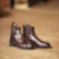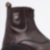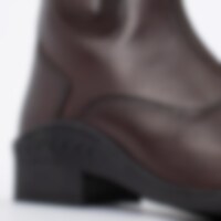 Jodhpurs i argentinsk læder med messingfarvet lynlås foran og elastik i siden. Skindforet inderside og med gummisåler.