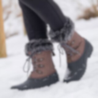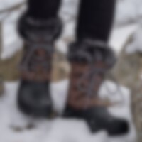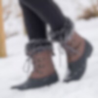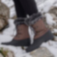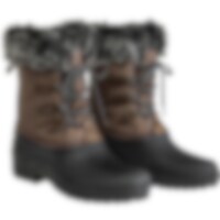 Solide staldstøvler med varmt for. Snører foran. Grove gummisåler og vandtæt foddel.