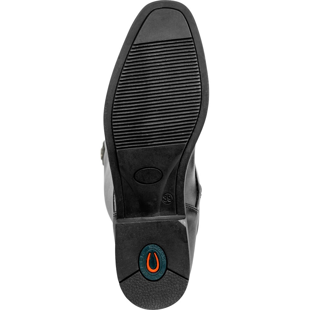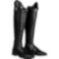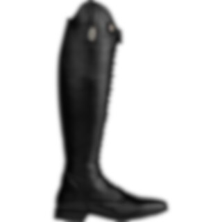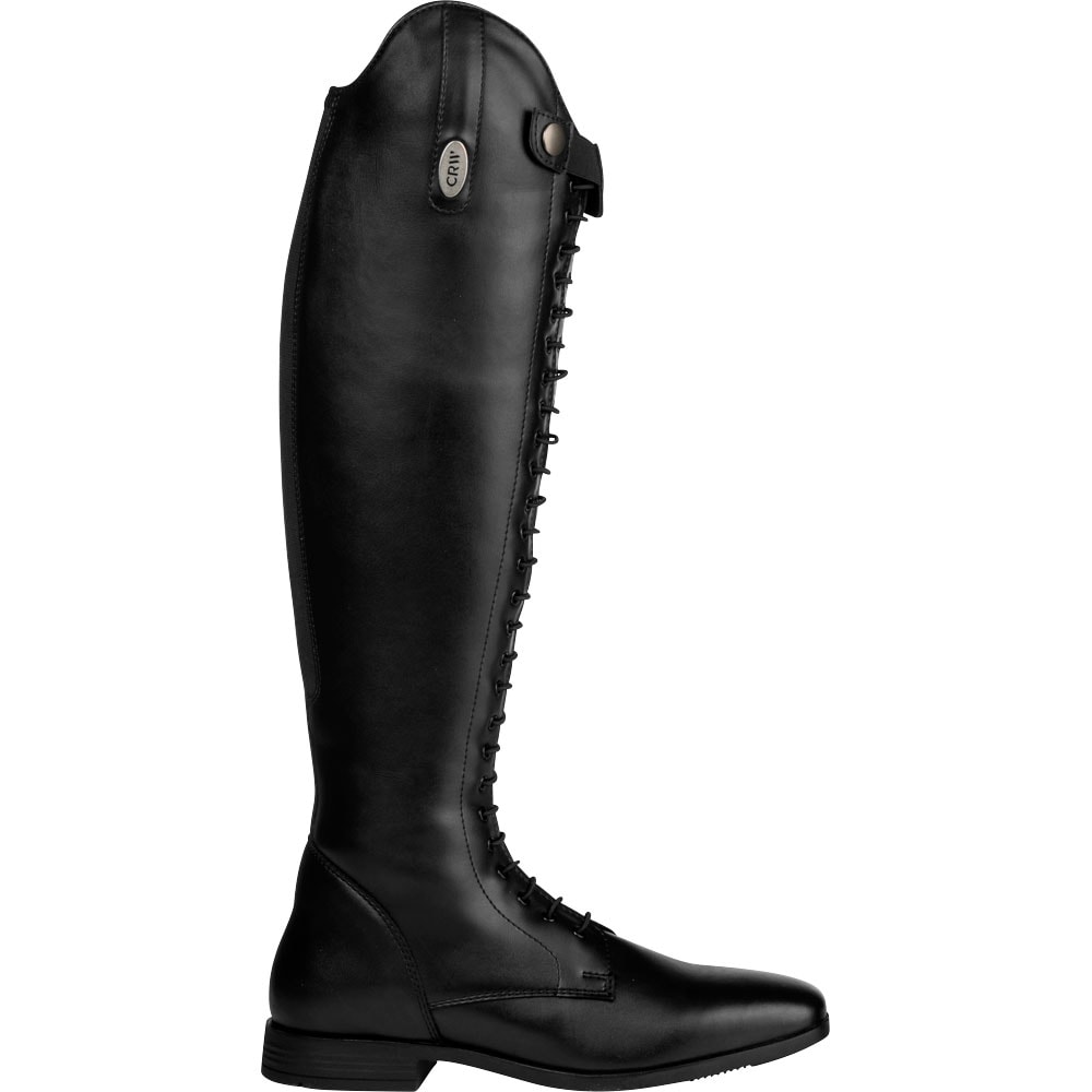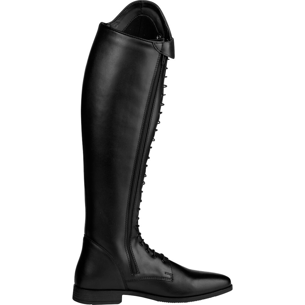 Ridestøvler i blødt, strækbart vegansk kunststof med elastisk snører hele vejen foran. Lynlås foran på indersiden af snøren og med elastik bagpå.