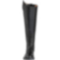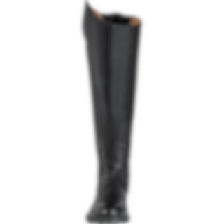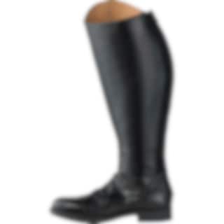 Ridestøvler designet til at passe ryttere med bred læg og ankel. Elastik på begge sider af lynlåsen giver dem ekstra bredde. Elastiksnører foran. Fremstillet i europæisk læder. Skindforede. Gummisåler med antislip.