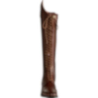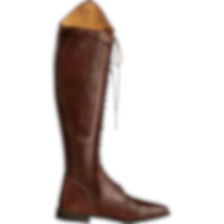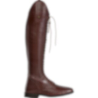 Ridestøvler i blødt, europæisk læder med justerbar skaftvidde med snører hele vejen. Skindforet inderside, lynlås foran med overtrukken elastik ved siden.
