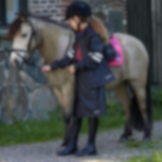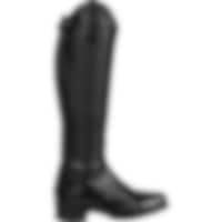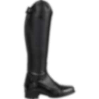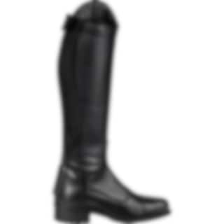 Ridestøvler med fod i blødt læder og skaft i strækbart kunststof. Lynlås bagpå og betrukket elastik på indersiden af skaftet.