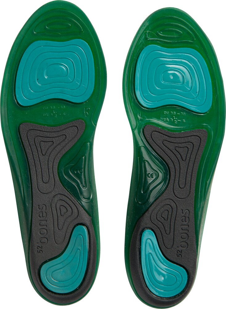 Gelesål, som dæmper stød på hæl, svang og forfod. Yderside i polyester og bambu.