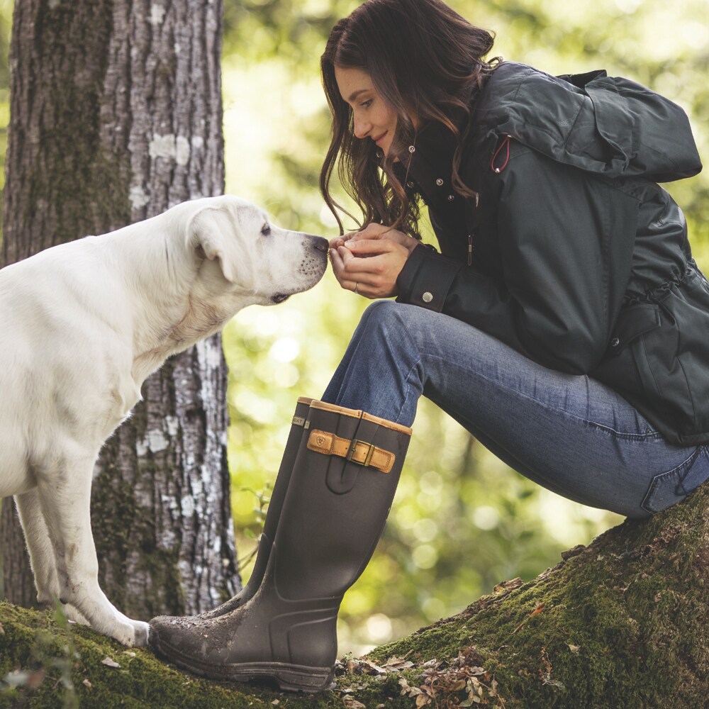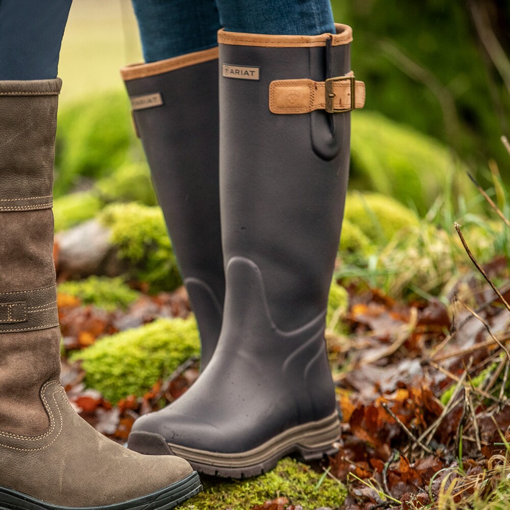 Ariat gummistøvler kombinerer det traditionelle udseende og anvendelse med lidt ekstra stil og design. Fremstillet i vandtæt, vulkaniseret gummi for at sikre, at fødderne holder sig tørre. Med støddæmpende EVA mellemsål og Duratread ydersål. forsynet med Agion®- teknologi for effektivt at modvirke dårlig lugt. Justerbare læderbånd og med læderbeklædte kanter..