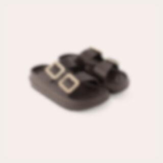 Komfortabel og trendy hjemmesko i EVA-materiale med tyk sål og lav vægt. Justerbare stropper. Spænder i rosaguld med hvide sten.