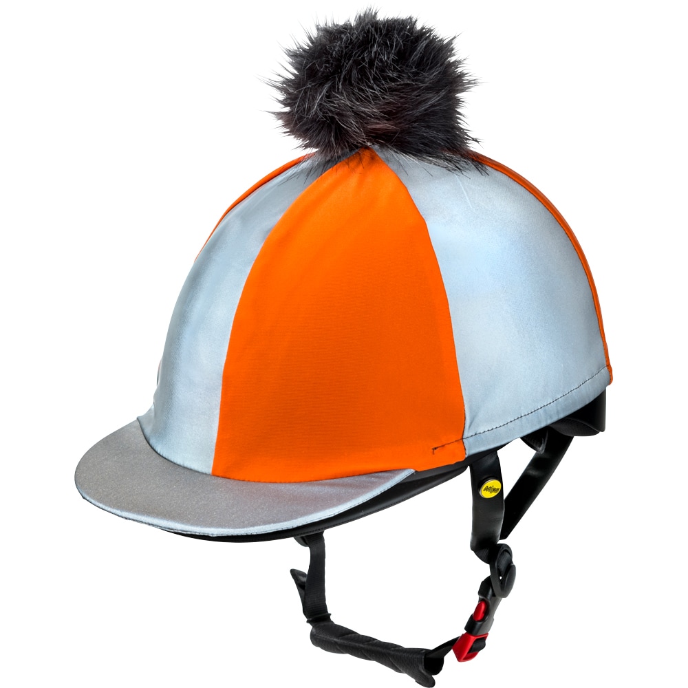 Hjelmovertræk i elastisk lycra, som passer til de fleste hjelme. Særdeles egnet til jockeyhjelme. Hver anden sektion er med refleksstof for øget synlighed i mørke og fluorescerende farver for ekstra synlighed i skumringslys. Med skygge og aftagelige kvaster i imiteret pels.