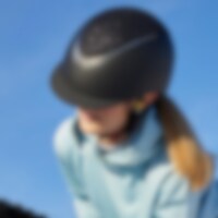 Stilren hjelm fra JH Collection i solid ABS-plast med mat overflade og flot dekoreret midtersektion. Med MIPS-teknologi, der giver øget beskyttelse mod hjernerystelse ved skrå slag. Ventilation foran hjælper med at holde dig kølig under hele rideturen. Af