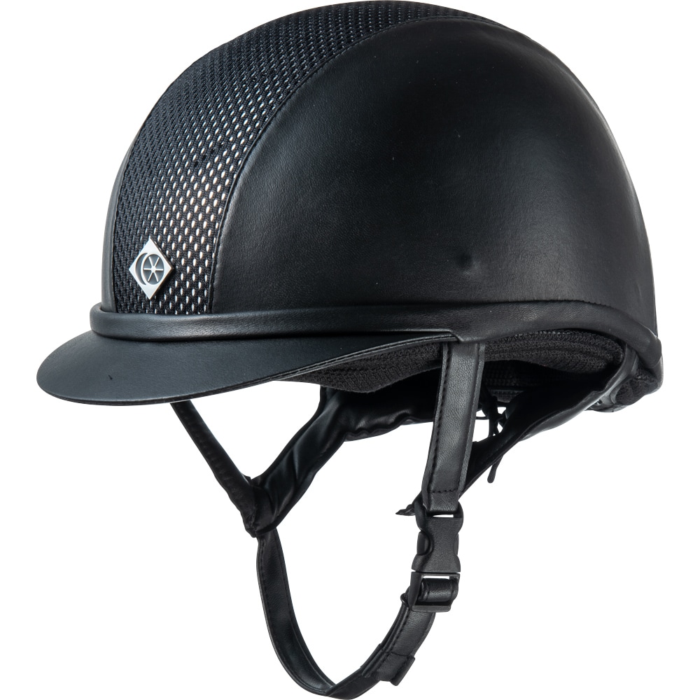 Ridehjelm i læderlook med lav profil. Blød GRpx-hagerem i imiteret læder. 12 diskrete ventilationshuller foran og bagpå, som hjælper dig med at holde en behagelig temperatur under hele træningen. Løs og vaskbar liner. Findes i 6 forskellige farvevalg fra