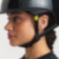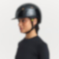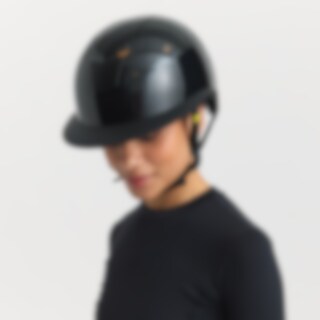 Ridehjelm med højglans finish og stort visir i mat nylon, der beskytter mod sollys, regn og kraftige ridehuslys. Metallisk lakeret stel med sølvflager og dekoreret med glitter. Kan justeres bagpå med en skrue for perfekt pasform. Trepunktssele med velcro på hageremmen for øget sikkerhed. Aftageligt inderfor, som du kan tage ud og vaske for at holde hjelmen frisk. Ventilation foran og bagpå hjælper med at holde en behagelig temperatur under hele træningen. Med MIPS for øget beskyttelse. S: 53-55, M: 56-58, L: 59-61. Godkendt i henhold til den nye CE-standard EN1384:2023. Leveres med beskyttende hjelmtaske.