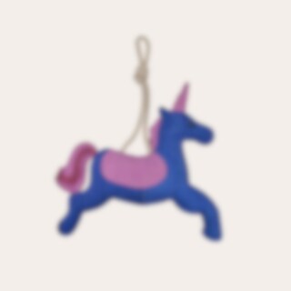 Legetøj til hest. Enhjørning lavet af ruskind. Optimal til heste, der let bliver rastløse i boksen, da dette kan være med til at holde hesten beskæftiget og modvirke kedsomhed. Nem at hænge op.