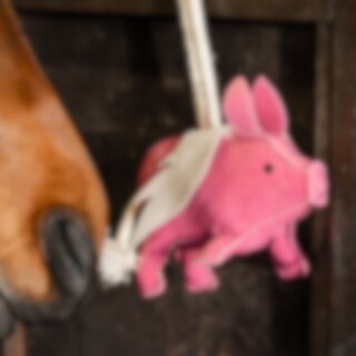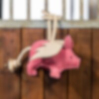 Bokselegetøj i slidstærkt, blødt, polstret ruskind formet som en gris. Ca. 25 x 17 cm.