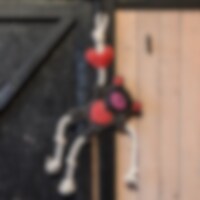 Æskelegetøj lavet af slidstærkt, blødt polstret ruskind formet som en bamse. Nemt at fastgøre i boksen. Ca. 31 x 23 cm ekskl. reb.