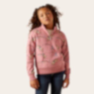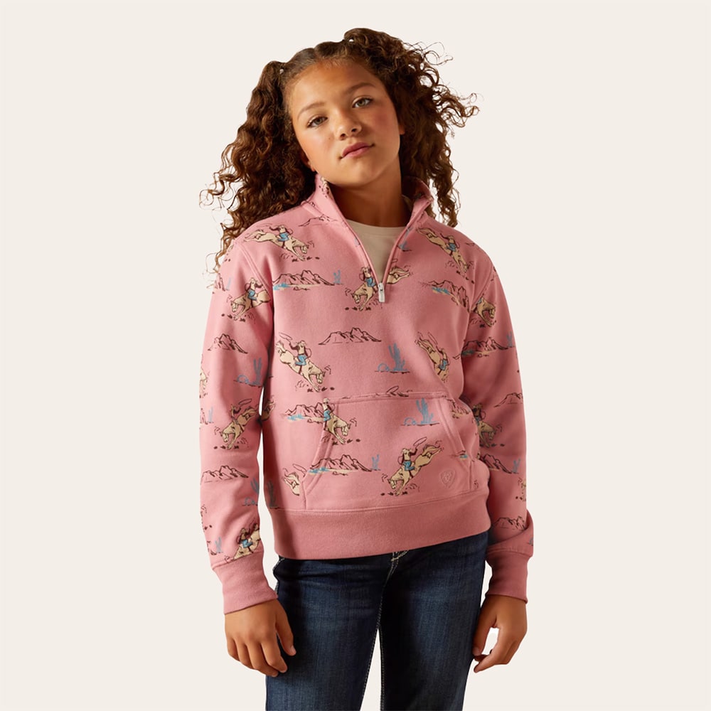 Trøje med kvart lynlås og western-tryk. Den perfekte trøje til at gøre indtryk! Med et screenprintet westernmotiv og en kængurulomme foran, lavet af blød og behagelig bomulds-polyesterfleece.
